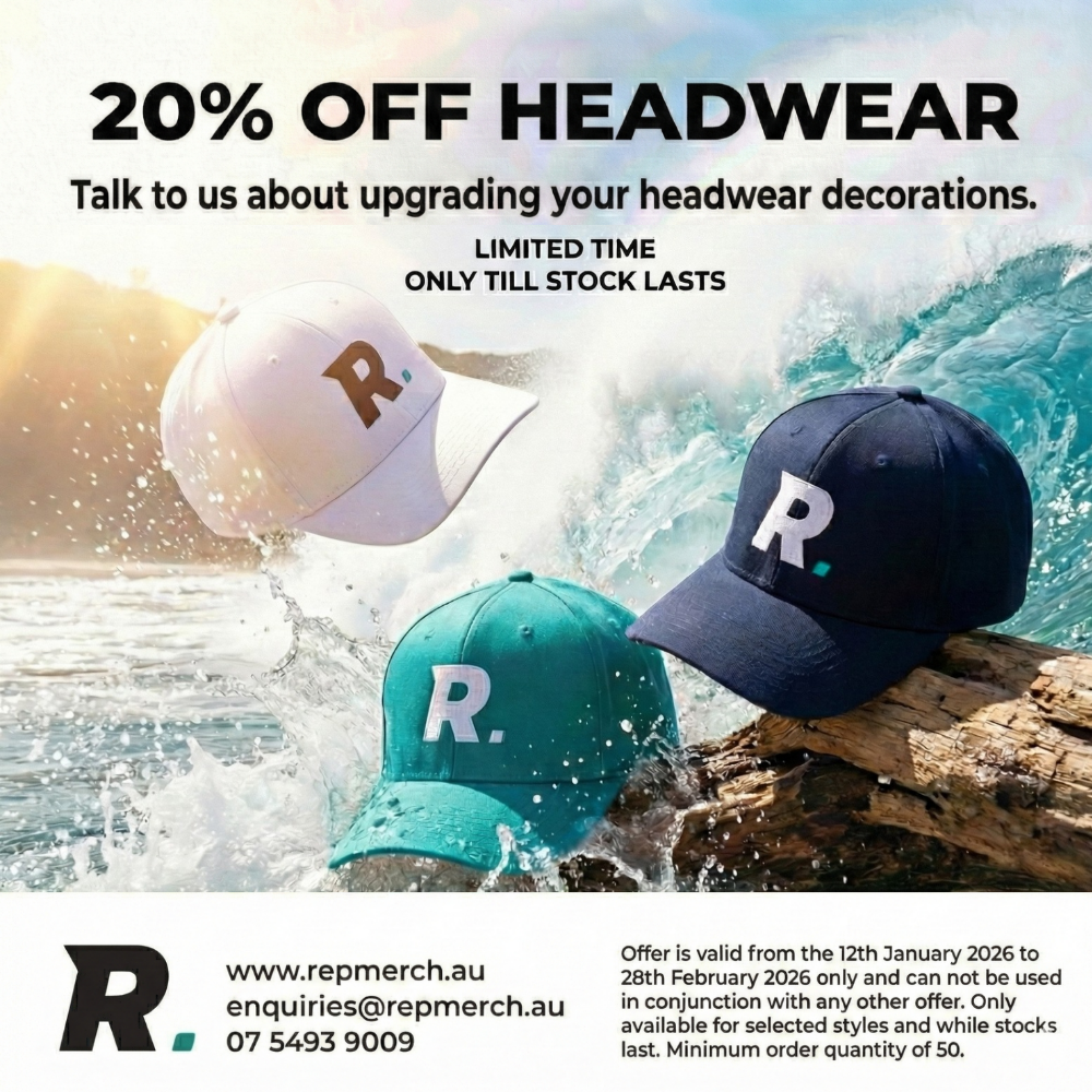 Make your brand stand out for less with our 20% off branded caps at REP Merch.