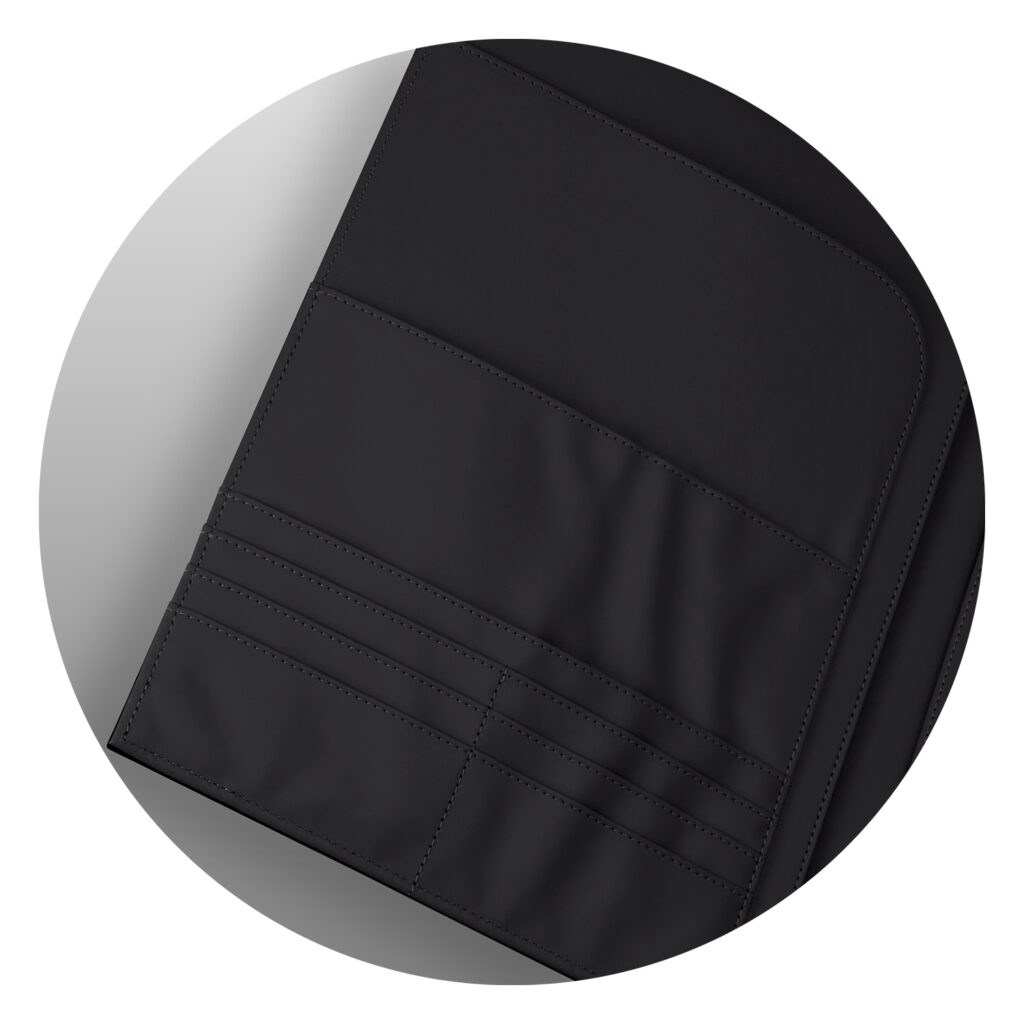 - Comprehensive Internal Layout: Equipped with two large document slip pockets and six card holders for total professional organisation.