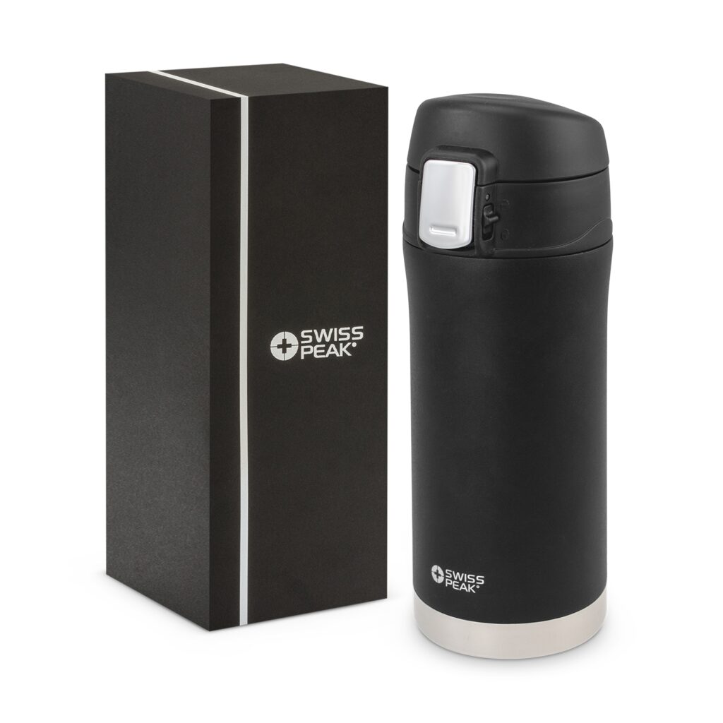 This mug delivers exceptional service through its robust and user-centric features. It is equipped with a secure screw-on lid and a push-button activated flip closure that is spring-loaded for smooth, effortless operation. For added peace of mind, the lid includes a positive locking mechanism that prevents leaks and spills even if the cup is accidentally knocked over. Whether you are commemorating a business milestone or providing a high-tier gift for a valued partner, the Elite remains a reliable and BPA-free choice. Each mug arrives beautifully presented in a Swiss Peak branded gift box, offering a polished and professional unboxing experience.