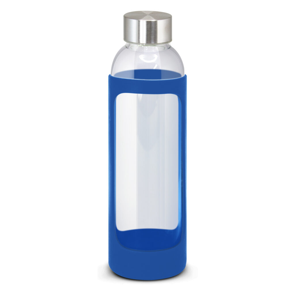 Deluxe 600ml borosilicate glass drink bottle which features a protective soft touch silicone sleeve and a secure screw on stainless steel lid. Borosilicate is a lightweight glass that is exceptionally strong and shatter resistant. This product is not intended to be used with carbonated or hot liquids and handwashing is recommended.